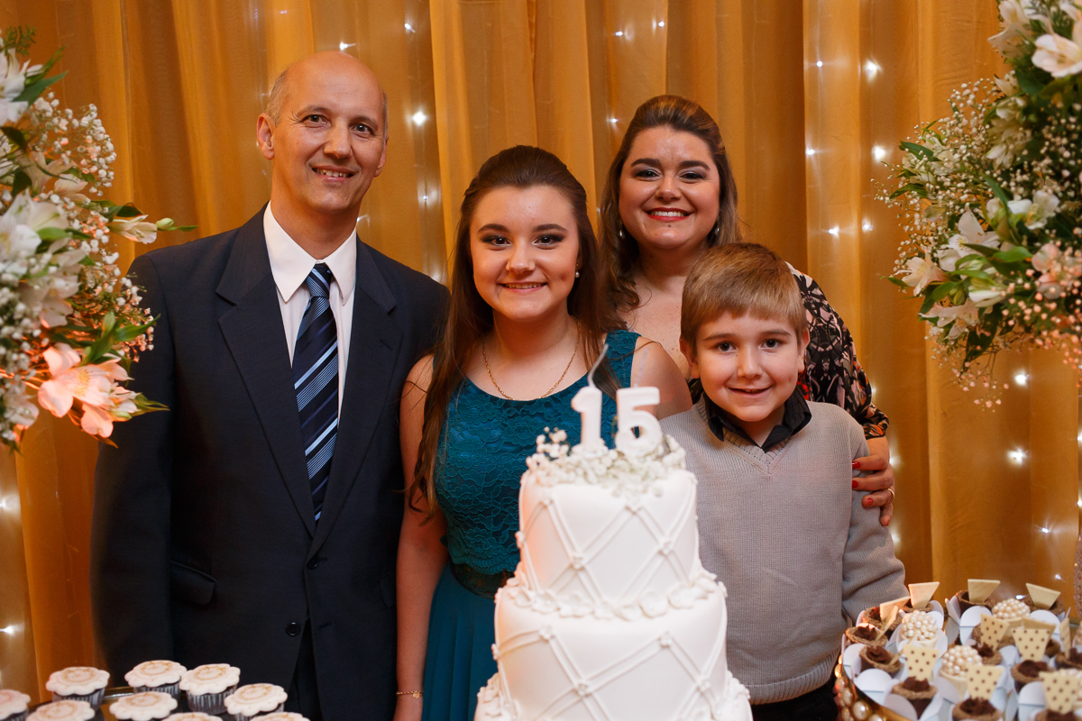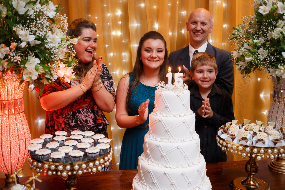 A menina do sorriso lindo e tímido é a Rafa, que com a presença de sua família e amigos, comemorou seus 15 Anos em uma festa que sobrou alegria e risadas.