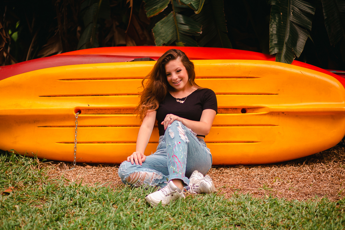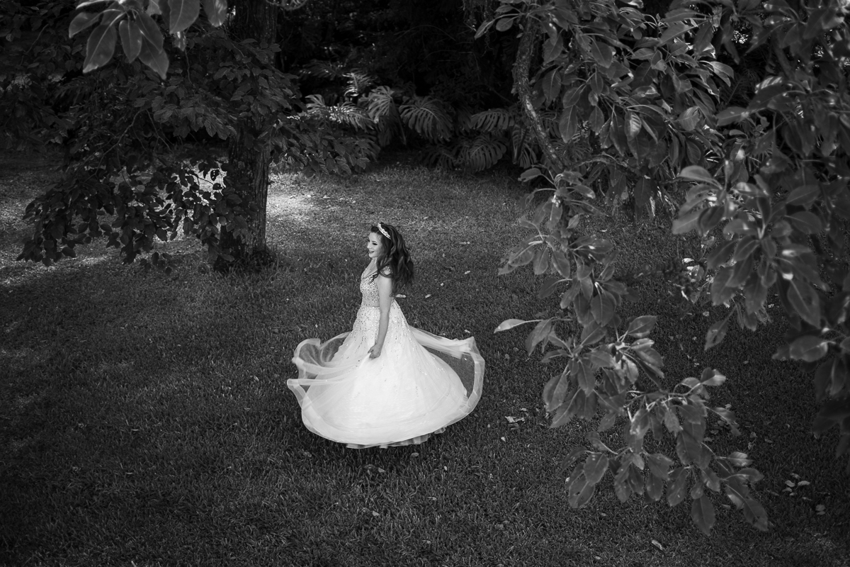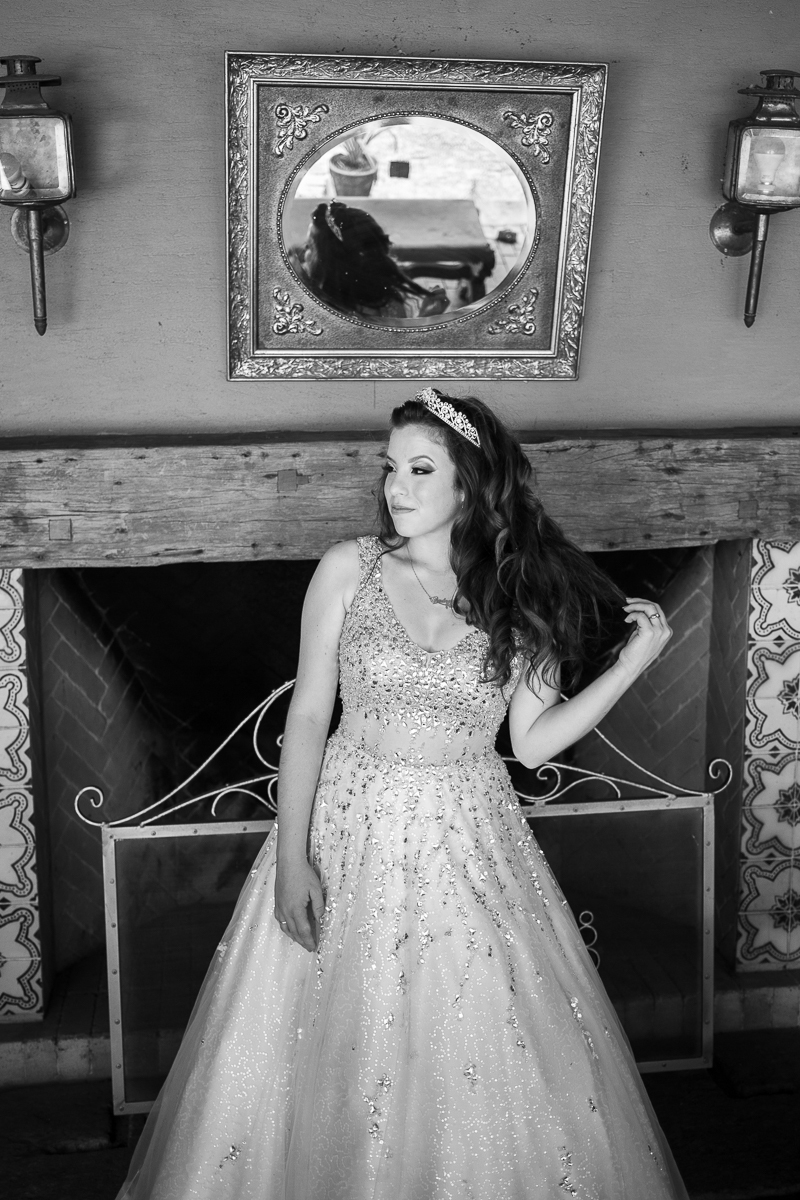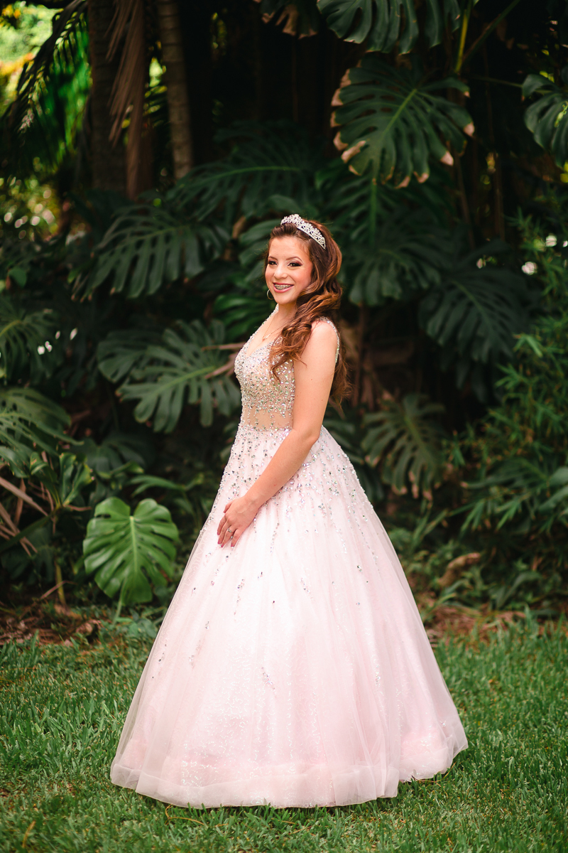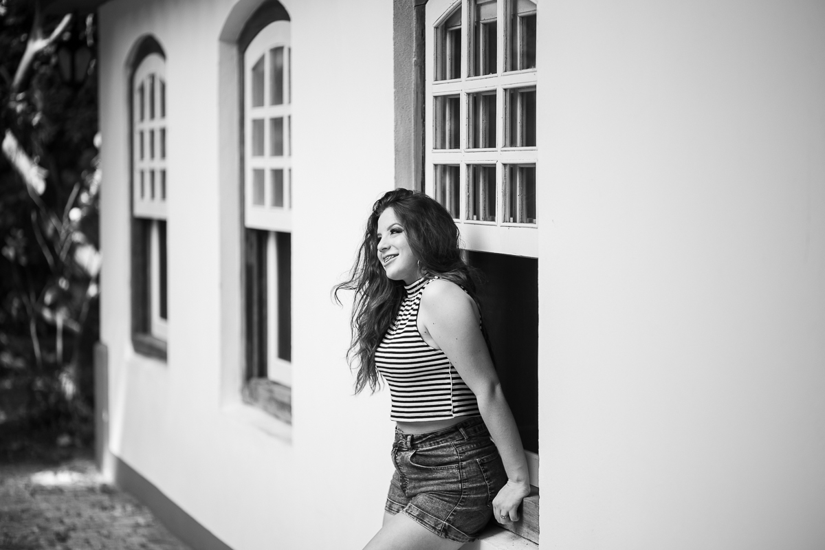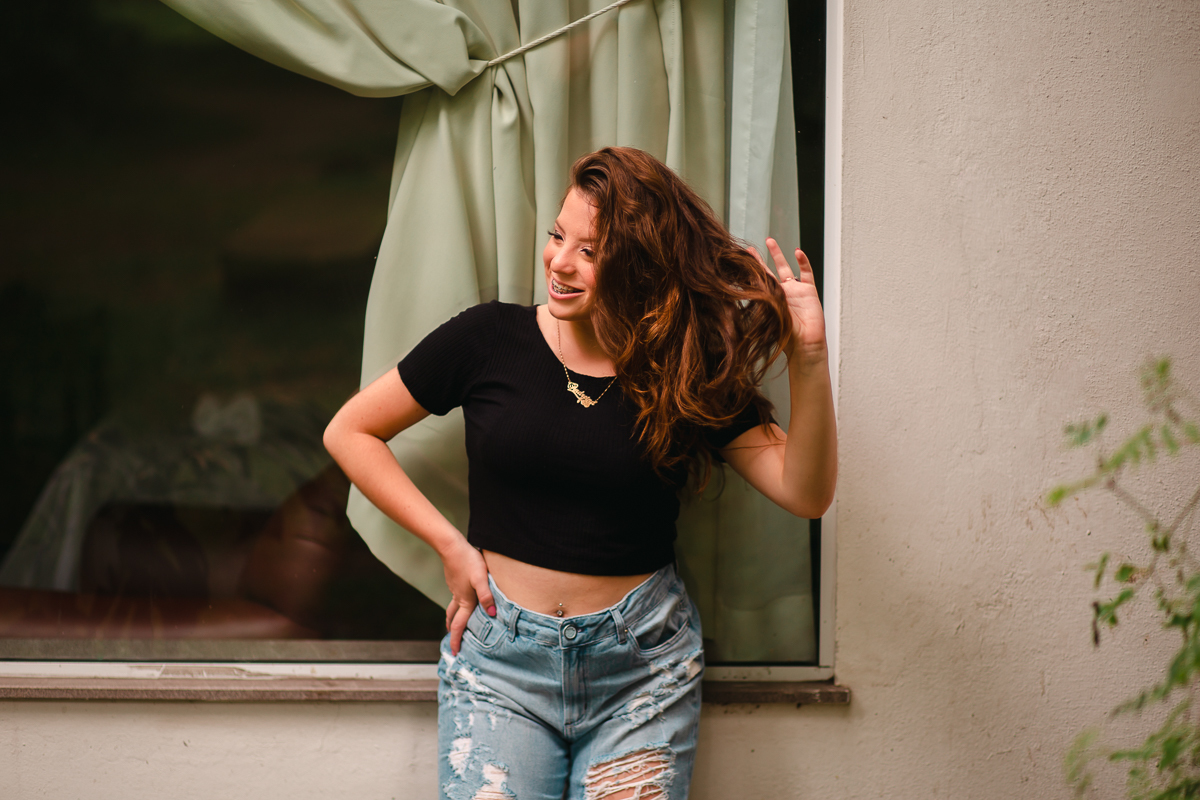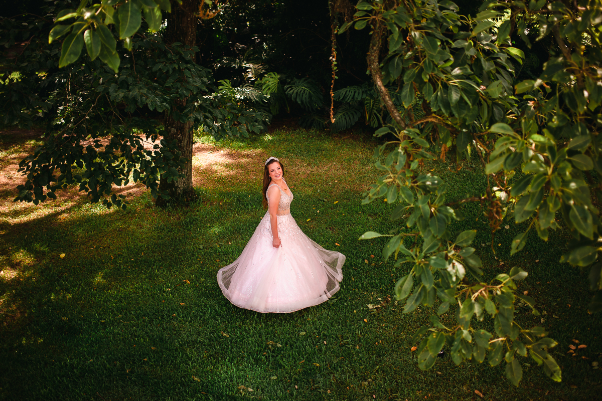 Desde o primeiro contato, sempre mencionou a sua vontade em fazer as fotos de vestido, o qual foi escolhido a dedo, muito brilhante, do jeito que ela queria. O local escolhido era perfeito: rústico e com muita natureza em volta pra dar ênfase ao look principal. Dei muita importância a isso, e depois fomos pra parte do ensaio onde os looks são mais o dia-a-dia da debutante.