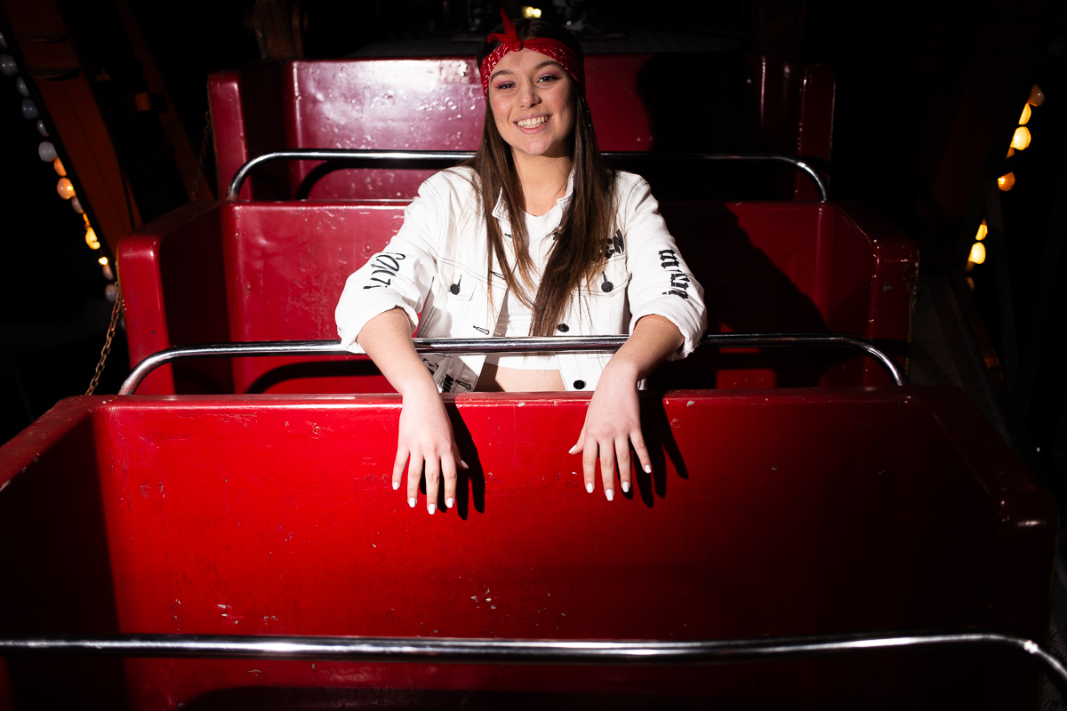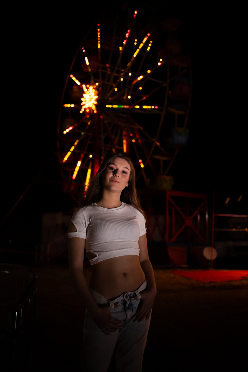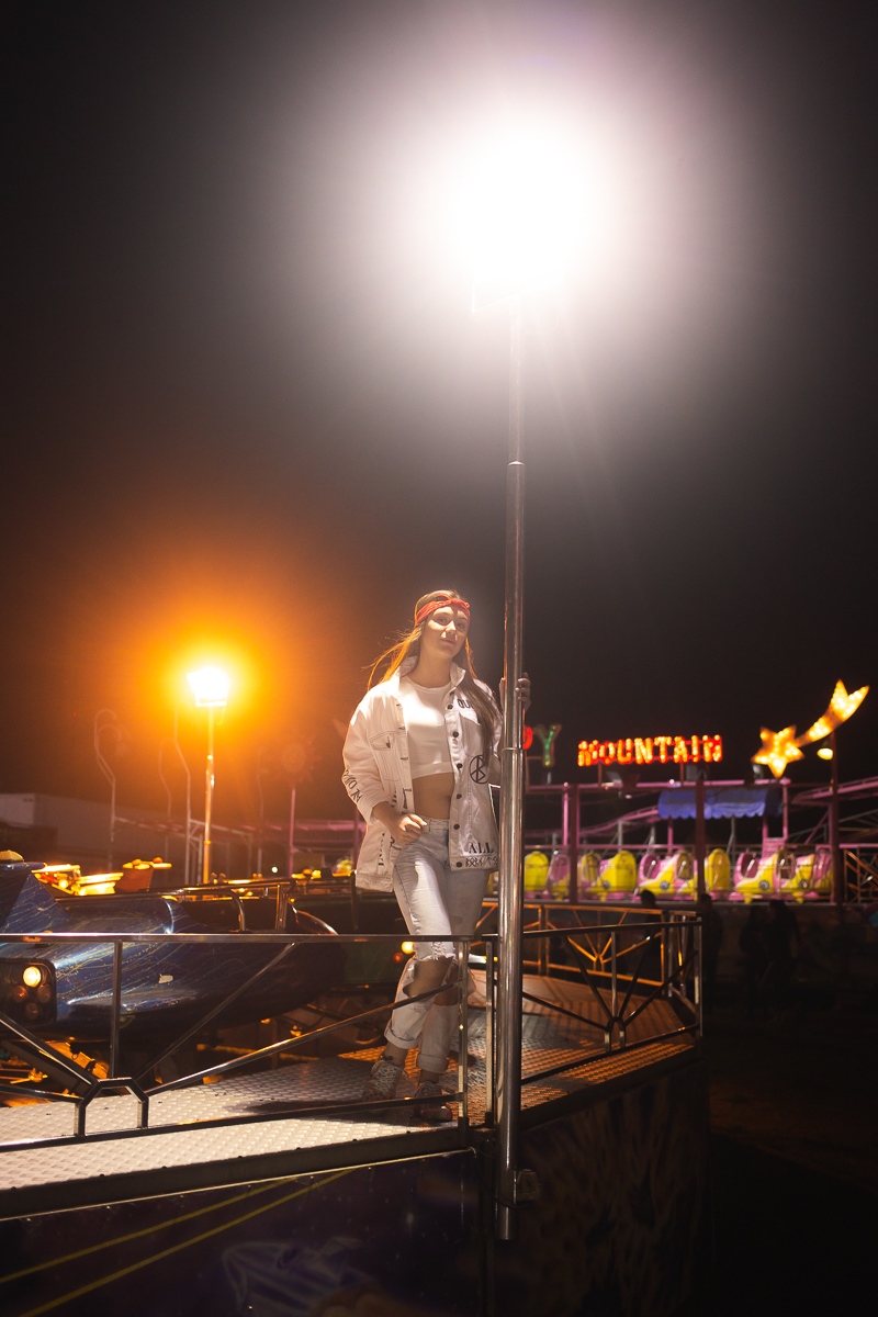 Ela aceitou todas minhas ideias, sugestões e fomos nos lugares que ela queria fotografar. Foi uma tarde incrível, onde brincamos bastante, interagimos, e no início da noite finalizamos o ensaio no Parque de Diversões que estava na cidade. E foi demais!!